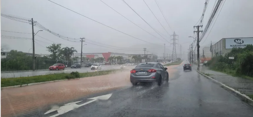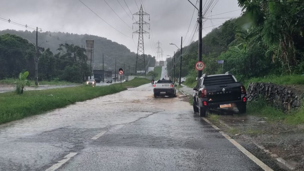 Entre os pontos com alagamentos, estão trechos nos bairros Areias e Campinas. Na Av. Josué di Bernardi, próximo ao cruzamento com a Rua Irmãos Vieira, o nível da água subiu a ponto de dificultar o acesso e a passagem de veículos. Já na Av. Presidente Nereu Ramos, o alagamento também se espalhou sobre a pista, exigindo maior atenção dos motoristas.